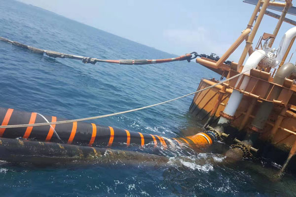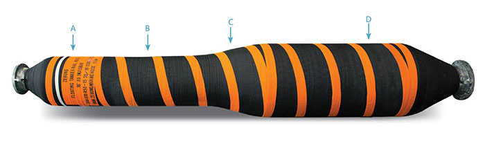 6. A meia mangueira flutuante reforçada de uma extremidade vem com um sistema confiável e eficiente de detecção e indicação de vazamento. O detector responderá rapidamente ao vazamento após detectar o dano da primeira carcaça. Nesse caso, o operador pode remover a mangueira danificada rapidamente. Isso reduz muito as perdas econômicas e o impacto no ambiente marinho.