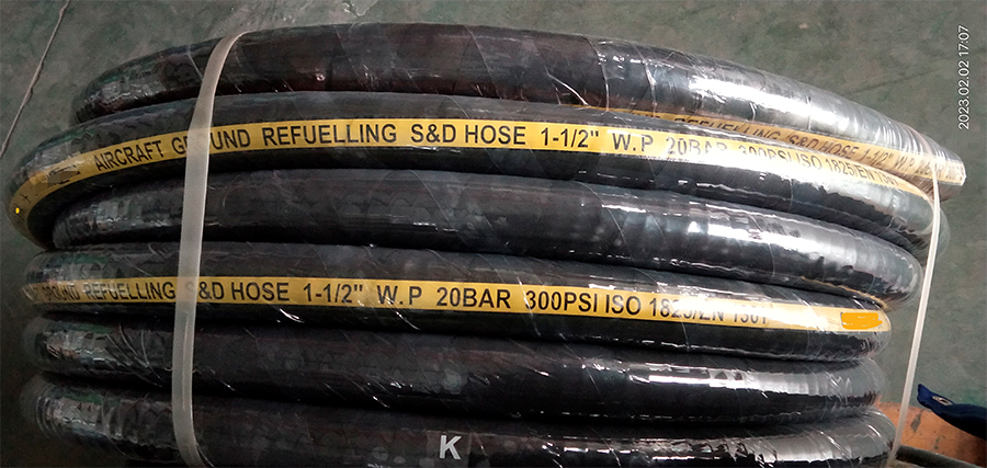 A mangueira de reabastecimento de aeronaves, fabricada para operações de reabastecimento de aeronaves, tem uma estrutura composta por cordão têxtil e fio de aço. Disponível em tamanhos que variam de 32mm a 102mm e com pressão de trabalho de 10 a 20 bar, atende rigorosamente os padrões de segurança. Certificada pela ISO 9000, possui um tubo de borracha sintética preta composta de NBR reforçado com cordão têxtil de alta resistência e fio de aço helicoidal, que garante a sua durabilidade.