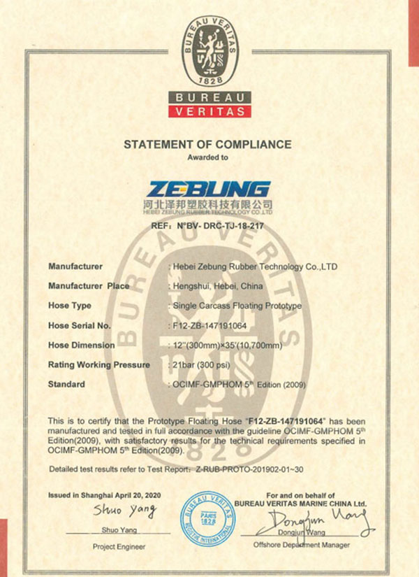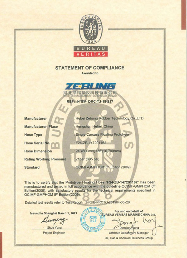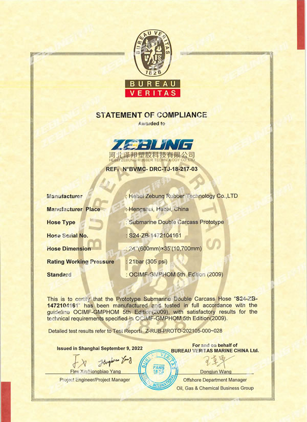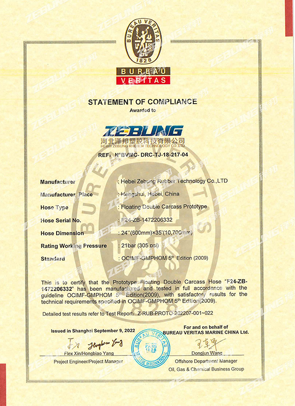 Relatório de teste BV (Protótipo de carcaça dupla flutuante-DN600mm)